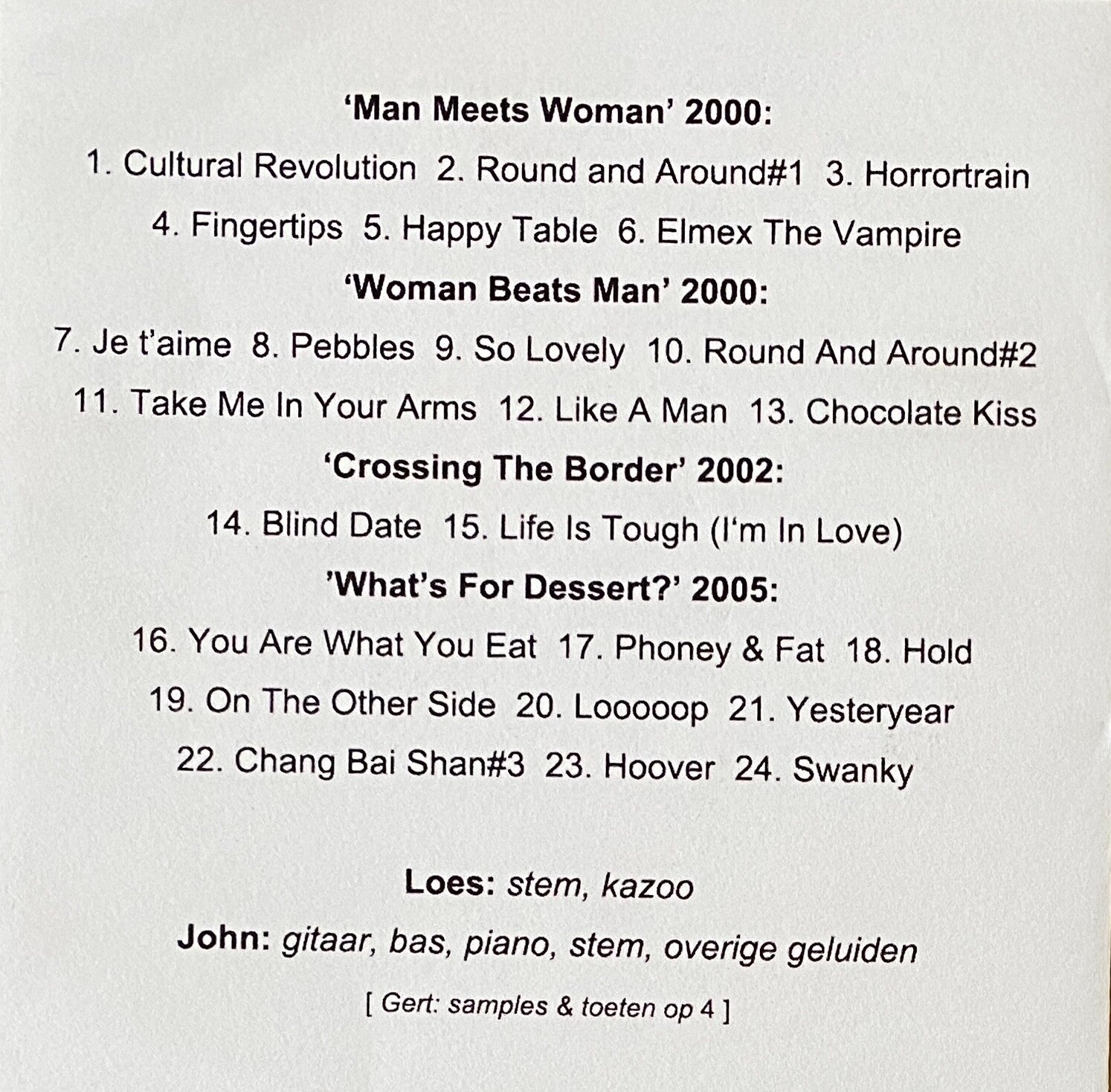John: gitaar, bas, piano, stem, overige geluiden