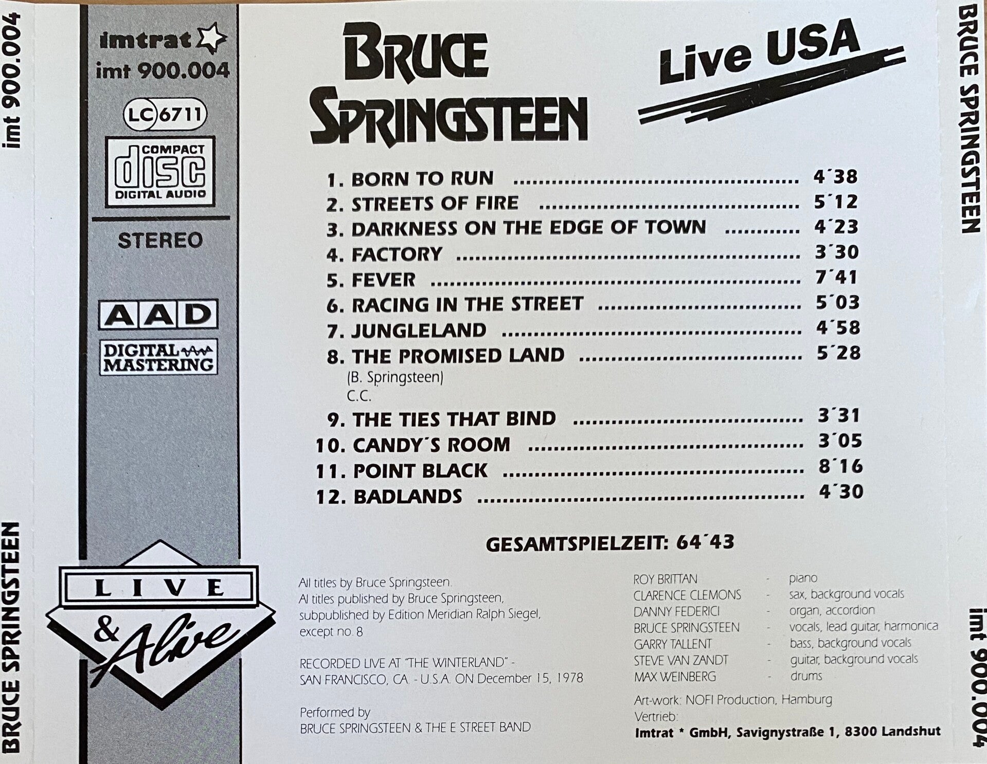 Recorded live at "The Winterland" - San Francisco, CA. - U.S.A. on December 15, 1978