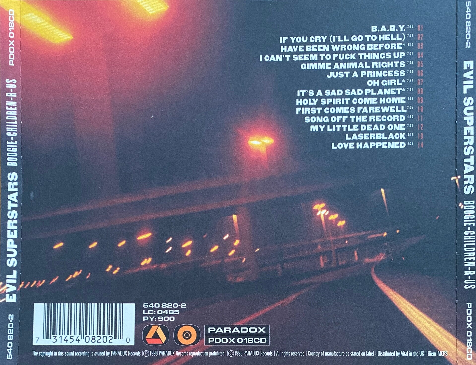 This is the second album by Evil Superstars, recorded in 1997 but released a year later. Continuing the impact caused by their debut, 'Boogie-Children-R-Us' has chaos and hilarity written all over it. At the same time they venture into a slightly more poppy and softer feel to their music, notably on the singles 'It's a Sad Sad Planet' and 'Love Happened'. The band called it 'A collection of short and bold poppy rock n'roll tracks', but Evil Superstars wouldn't be Evil Superstars if they didn't play around with the listener. Their version of a softer side still contains their trademark musical and lyrical absurdity that makes you both rock and laugh out loud.