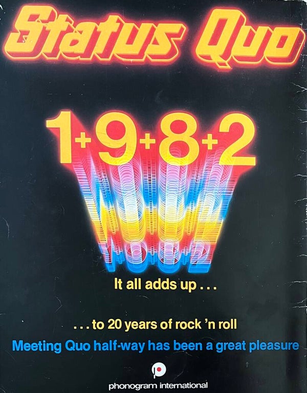 STATUS QUO 1+9+8+2 XX (1982 UK 32-page 12" x 9½" full colour official tour programme, packed with photographs & information about the band & their first twenty years. The programme shows some light scuffs.