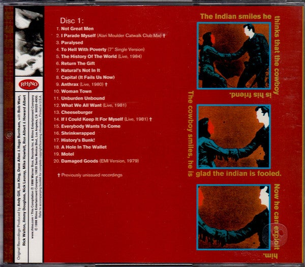 Most puzzling is the decision to present the tracks out of chronological sequence, meandering from 1979 to the 1990s and back again while visiting all points in between. All this taken into consideration, there's a lot of music here that Gang of Four fans will consider among the band's most essential, and the package is made more appealing with a 52-page booklet that has a lengthy band history by noted British punk historian Jon Savage.