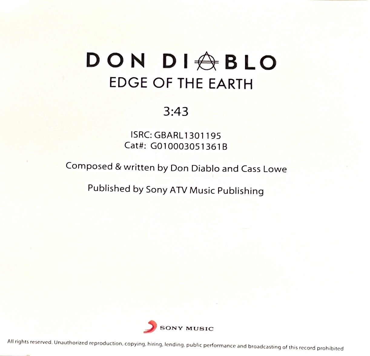 Don Diablo ‎– Edge Of The Earth CDS PROMO