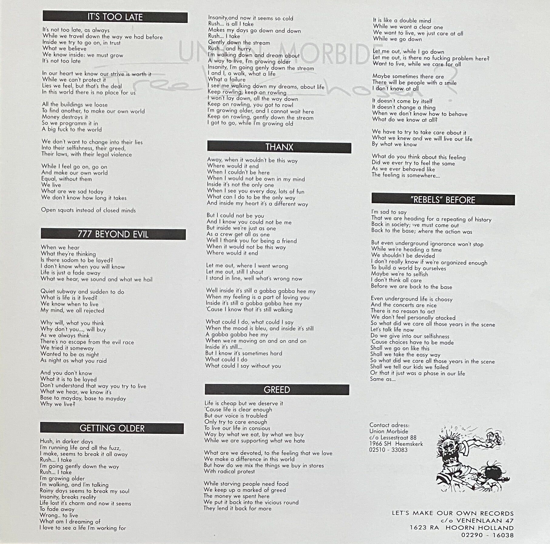 Stichting Lekker Dier / NBBV inserts and lyrics sheet included. Plays great but has some marks