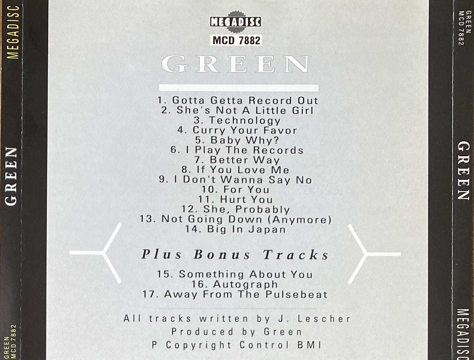 Lescher's guitar and vocal work is strong throughout, bassist John Diamond and drummer John Valley fill in the empty spaces and keep the music moving forward at all times, and if the production is a bit thin in spots, it captures the essence of the band very well indeed. Green may not have been the hippest band in Chicago in 1986, but the album they made that year shows they could write a great song and make it work on tape, and that's a skill to be appreciated whatever the time, place, or fashion.