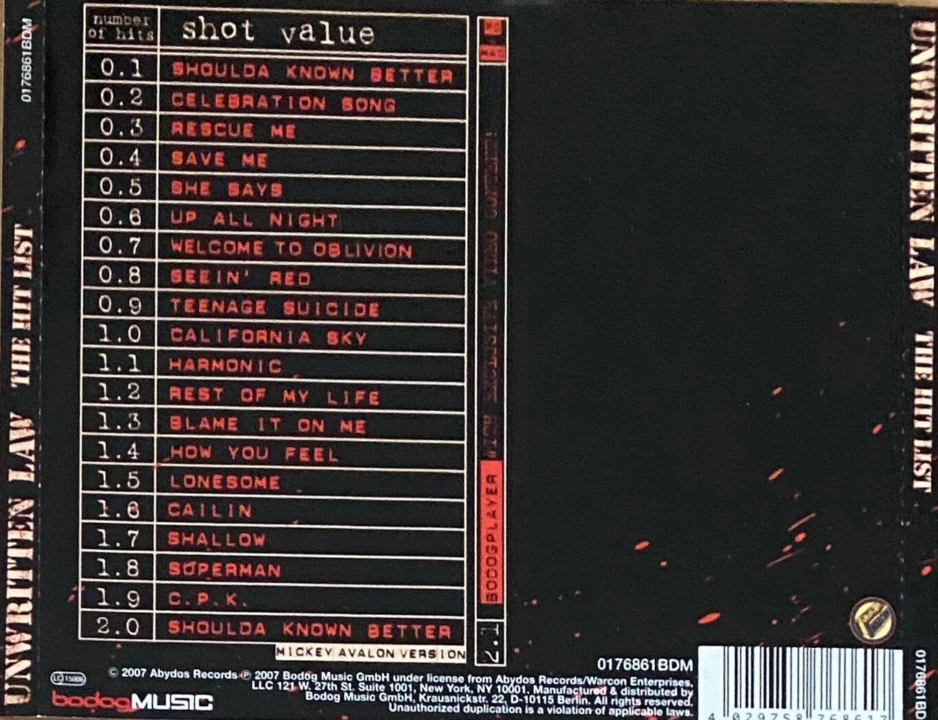 Unwritten Law – The Hit List CD