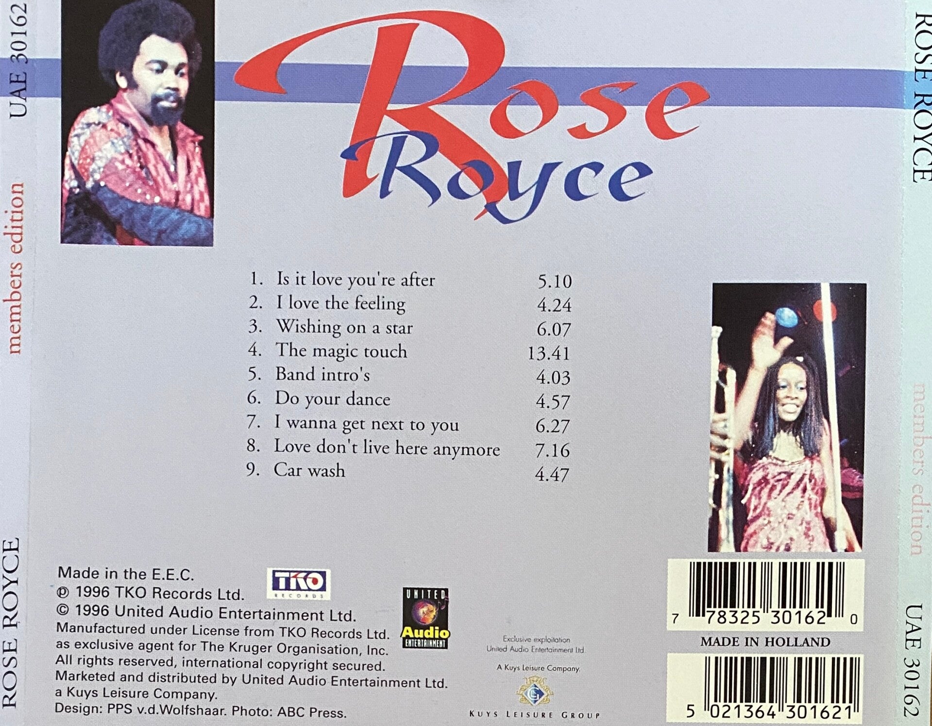 Soundtrack of the official Rose Royce - In Concert (1993) VHS video.