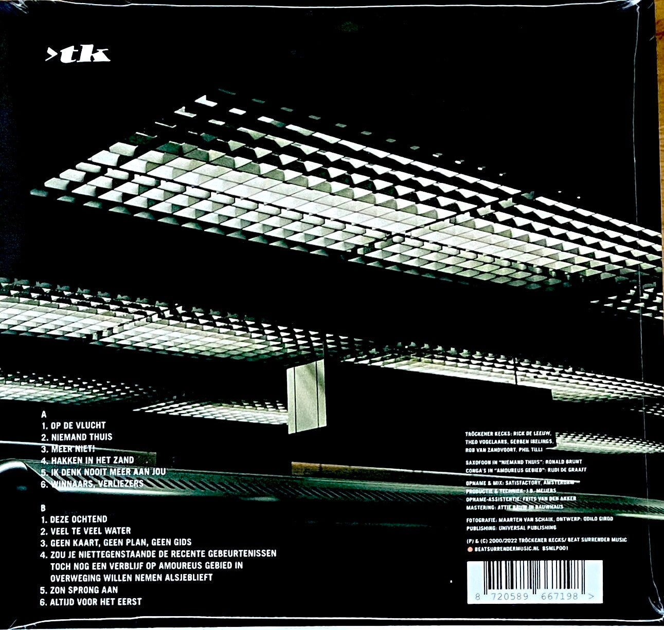 '>tk' is een voortreffelijk album dat een vernieuwde Kecks laat horen. Het lijkt erop dat de band zich eindelijk op zijn gemak voelt in de studio. Waar vroeger vooral werd getracht het live-gevoel te benaderen, is '>tk' een volwassen popplaat die klinkt als een klok. Daaraan zal producer J.B. Meyers (voorheen Supersub) een flink handje hebben meegeholpen. Op eens krijgen de teksten en melodieën van De Leeuw een waardige aankleding. De single 'Niemand Thuis' is schrijnend melancholiek, zonder te breken met de Kecks-traditie. Meyers laat de songs wel spannender en eigentijdser klinken: het fraaie 'Ik Denk Nooit Meer Aan Jou' wordt gedomineerd door een kale ritmetrack. 'Veel Te Veel Water' is een prachtige ballade en zelfs het bizar getitelde 'Zou Je Niettegenstaande De Recente Gebeurtenissen Toch Nog Een Verblijf Op Amoureus Gebied In Overweging Willen Nemen, Alsjeblieft?' is met een weird refrein een topper.